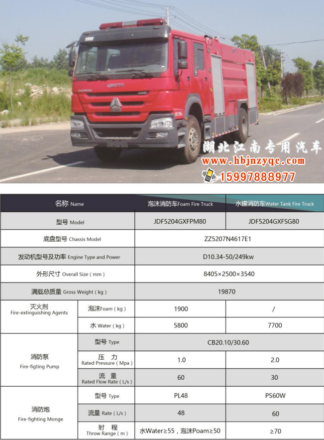 | 產(chǎn)品名稱: | JDF5204GXFPM80型泡沫消防車 | 外型尺寸(mm): | 8405×2500×3540 |