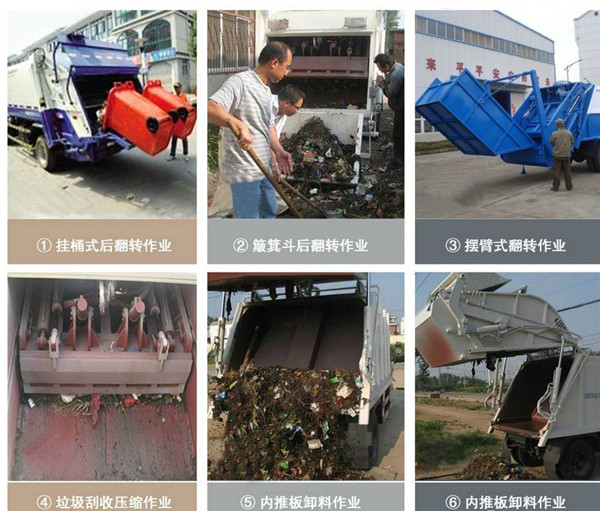 東風(fēng)天錦12立方壓縮式垃圾車后翻轉(zhuǎn)機(jī)構(gòu)也有四種選擇: