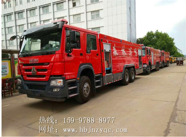 近日,3輛“巨無(wú)霸”森林消防車(chē)調(diào)試完畢,準(zhǔn)備發(fā)車(chē)!熬逕o(wú)霸”森林消防車(chē)采用中國(guó)重汽HOWO底盤(pán)改裝而成,容積:15-16噸,車(chē)頂配備CB10/60消防泵,PS60消防炮,射程可打60米以上,主要用于森林消防滅火。該款“巨無(wú)霸”森林消防車(chē)動(dòng)力強(qiáng)大,主要裝備大功率消防水泵、儲(chǔ)水罐、消防炮及其它消防器材,是森林消防、石油及地質(zhì)勘探必備的消防裝備!熬逕o(wú)霸”森林消防車(chē)載液量多,操控性好,維修簡(jiǎn)便,越野能力強(qiáng),可廣泛應(yīng)用于丘陵、山地、凹地、河谷、森林等地帶,撲救一般物質(zhì)火災(zāi)。