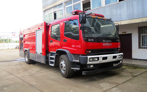 慶鈴五十鈴FTR6噸泡沫消防車整車型號(hào)為:JDF5153GXFPM60型泡沫消防車、慶鈴五十鈴FTR6噸水罐消防車整車型號(hào)為:JDF5153GXFSG60型水罐消防車,采用慶鈴QL1100A8MAY底盤改裝而成。整車由消防員乘員室和車身兩大部分組成,乘員室為單排改雙排,可乘坐2+4人,該車為內(nèi)藏罐結(jié)構(gòu),車身前部為器材箱,中部為水罐,后部為泵房。載液罐體為優(yōu)質(zhì)碳鋼,與底盤采用彈性連接,載水3900kg(PM60)/5900kg(SG60),泡沫液量1961kg(PM60),裝備了上海茸申消防設(shè)備有限公司生產(chǎn)CB10/30型低壓消防泵,額定流量40L/S,車頂安裝成都威斯特消防機(jī)械有限公司生產(chǎn)的PL24(PM60)或PS30W(SG60)型車用消防炮。該車最大的特點(diǎn)是載液量大、操控性好、維修簡(jiǎn)便?蓮V泛應(yīng)用于公安消防隊(duì)、廠礦企業(yè)及社區(qū)、碼頭等場(chǎng)所,撲救大型油類火災(zāi)或一般物質(zhì)火災(zāi)。