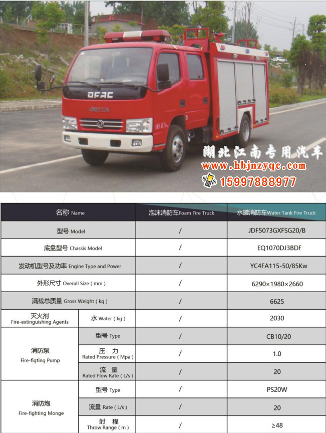 | 東風小多利卡2噸水罐消防車 發(fā)動機參數(shù)(可選不同發(fā)動機) | |||