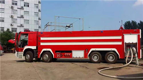 泡沫消防車(chē):主要裝備消防水泵、水罐、泡沫液罐、泡沫混合系統(tǒng)、泡沫槍、炮及其他消防器材,可以迅速?lài)娚浒l(fā)泡400-1000倍的大量高倍數(shù)空氣泡沫,使燃燒物表面與空氣隔絕,特別適于撲救石油及其產(chǎn)品等油類(lèi)火災(zāi)。泡沫消防車(chē)車(chē)型有:東風(fēng)145泡沫消防車(chē)(5噸)、東風(fēng)153泡沫消防車(chē)(6噸)、東風(fēng)天錦6噸泡沫消防車(chē)、重汽豪沃8噸泡沫消防車(chē)、重汽豪沃8噸泡沫消防車(chē)、重汽豪沃10噸泡沫消防車(chē)、重汽豪沃12噸泡沫消防車(chē)、重汽豪沃15噸泡沫消防車(chē)、慶鈴五十鈴6噸泡沫消防車(chē)、慶鈴五十鈴7噸泡沫消防車(chē)、慶鈴五十鈴11-12噸泡沫消防車(chē)