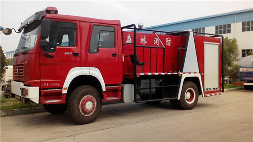 干粉消防車(chē):主要裝備干粉滅火劑罐及整套干粉噴射裝置、消防水泵和消防器材等,可以撲救可燃和易燃液體、可燃?xì)怏w火災(zāi)、帶電設(shè)備火災(zāi),也可以撲救一般物質(zhì)的火災(zāi)。對(duì)于大型化工管道火災(zāi),撲救效果尤為顯著,是石油化工企業(yè)常備的消防車(chē)。重汽豪沃7噸干粉二氧化碳消防車(chē)、重汽豪沃7噸干粉泡沫聯(lián)用消防車(chē)