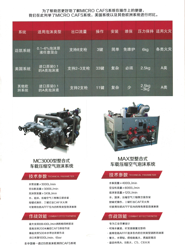 CAFS,即產(chǎn)生高質(zhì)量的CAFS (壓縮空氣泡沫)的系統(tǒng)。該系統(tǒng)采用不同于傳統(tǒng)出□倒吸 氣的混合方式,將水、泡沫液與帶壓空氣以主動混合技朮進行混合,將噴射泡沫解壓還原, 再通過一套管路系統(tǒng),實現(xiàn)多個噴射裝置的應用。