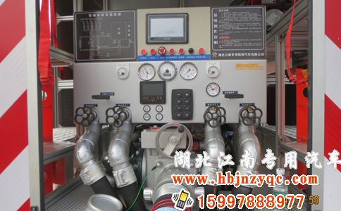 JDF5160GXFAP40型壓縮空氣泡沫消防車,采用德國曼恩商用車股份公司生產(chǎn)的TGM18.290消防車底盤改裝而成。整車由消防員乘員室和車身兩大部分組成,乘員室為原裝雙排駕駛室,可乘坐2+4人,該車為內(nèi)藏罐結(jié)構(gòu),車身前部為器材箱,中部為水罐,水罐兩側(cè)為器材箱,后部為泵房。載液罐體為304不銹鋼,與底盤采用彈性連接,載水3000kg,泡沫液量1000kg,裝備了德國邁凱生產(chǎn)的MicroCAFS3000型消防車用壓縮空氣泡沫系統(tǒng),額定壓縮空氣泡沫流量50L/S,可支持8支400L/min流量的CAFS泡沫槍同時作戰(zhàn);沿消防樓梯往上鋪設380M水帶,支持2支400L/min流量的水槍使用CAFS同時滅火作戰(zhàn),末端槍口壓力5bar。廣泛應用于地下、石油、化工、大型商場、高層住宅、重點文物、車站碼頭等。特別節(jié)省水和泡沫液,高效環(huán)保,而且不會造成二次傷害。該系統(tǒng)操作簡單,免維護,一鍵即可出CAFS,使用完后無需對泡沫泵進行清洗。