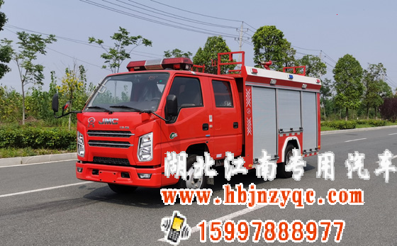 JDF5060GXFSG15/J6型水罐消防車,采用江鈴JX1061TSGA26底盤改裝而成。整車由消防員乘員室和車身兩大部分組成,乘員室為原裝雙排,可乘坐2+3人,該車為內(nèi)倉罐結(jié)構(gòu),車身前部為水罐+器材箱,后部為泵房。載液罐體為優(yōu)質(zhì)碳鋼,與底盤采用彈性連接,載水1700kg,裝備了CB10/30-BL型消防泵,額定流量30L/S,車頂安裝PS30型車用消防炮。該車輛結(jié)構(gòu)緊湊,配置完備,機(jī)動性強(qiáng),能夠及時應(yīng)對企業(yè),社區(qū)或重點(diǎn)消防單位的火情,可以第一時間形成小型戰(zhàn)斗力進(jìn)行初期火災(zāi)的撲救和人員疏散撤離?蓮V泛應(yīng)用于消防救援站,政府專職消防隊,企業(yè)專職消防隊等