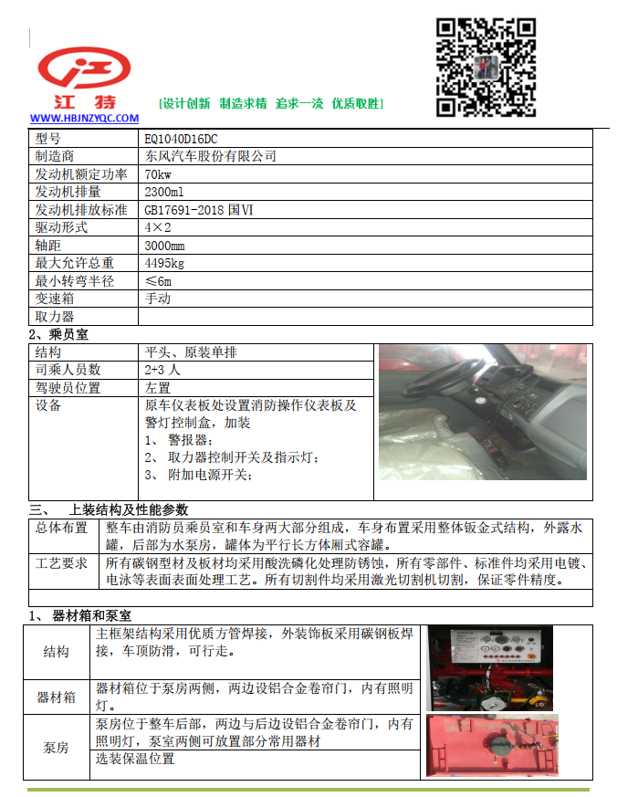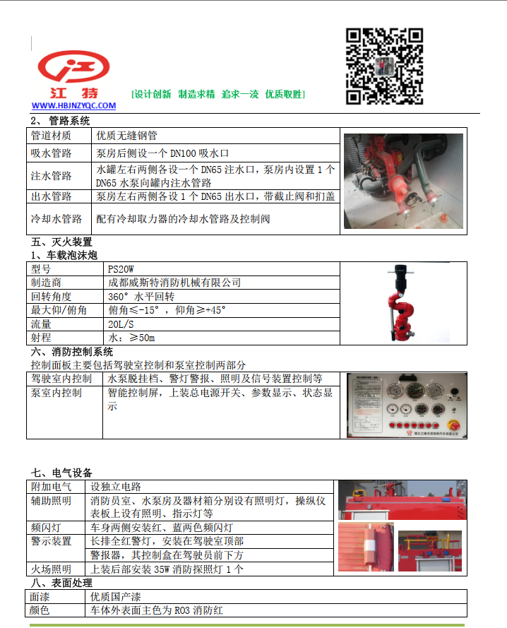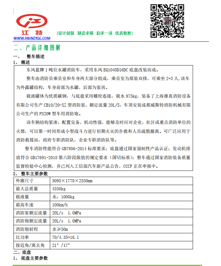 底盤通過國家強制性產(chǎn)品認(rèn)證;發(fā)動機排放符合GB17691-2018國Ⅵ第六階段限值的規(guī)定要求;整車通過國家消防裝備質(zhì)量監(jiān)督檢驗中心檢測(報告編號:Zb202030263)并已列入工信部汽車新產(chǎn)品公告。