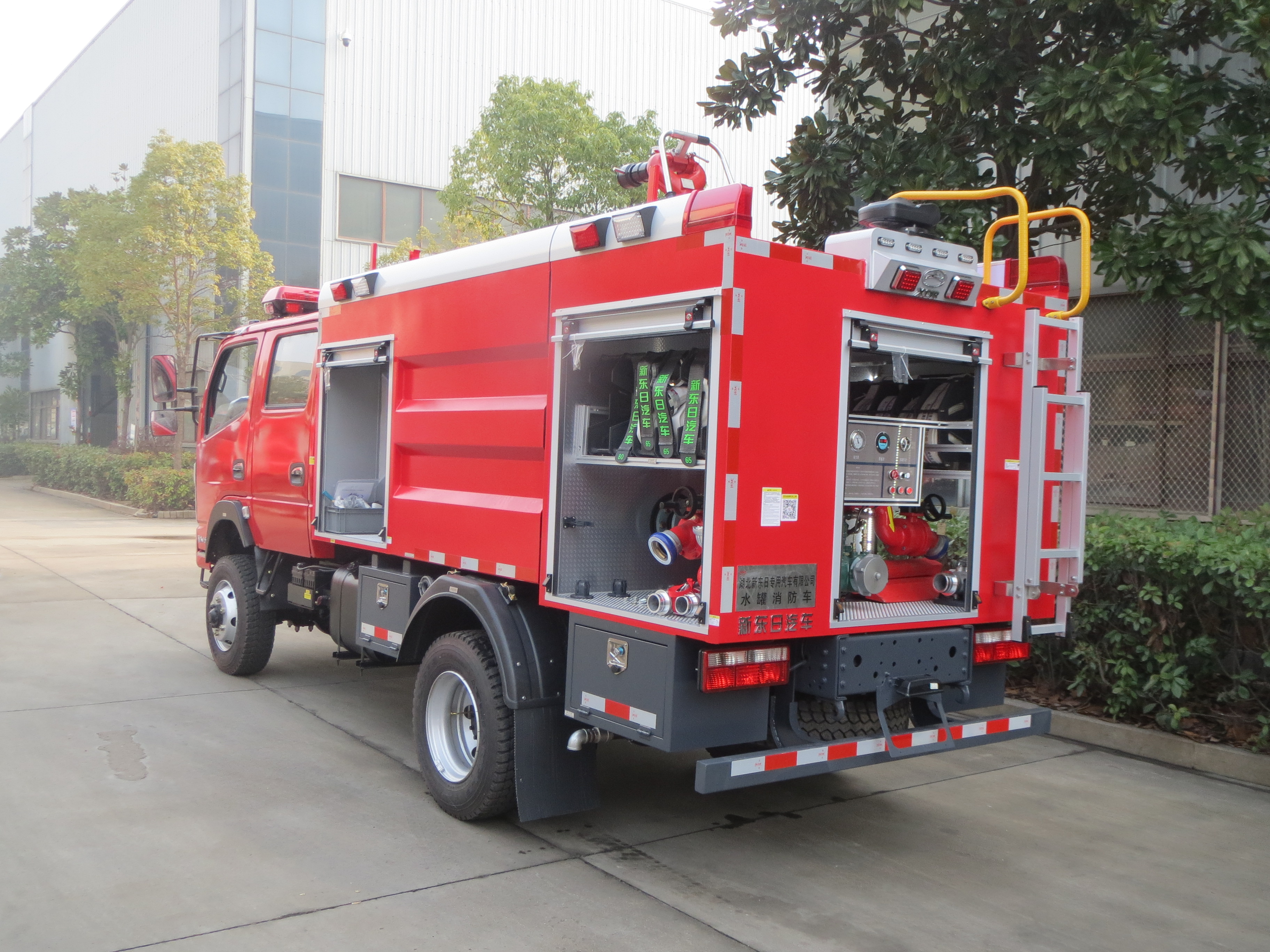 泡沫消防車的專用裝置主要包括取力器、水箱、泡沫箱、設(shè)備箱、泵房、消防泵、真空泵、泡沫比例混合裝置和消防炮等。裝載的滅火介質(zhì)由水和泡沫液體組成,可以獨(dú)立滅火。特別適用于撲救油類等油類火災(zāi),也可向火災(zāi)現(xiàn)場提供水和泡沫混合物。