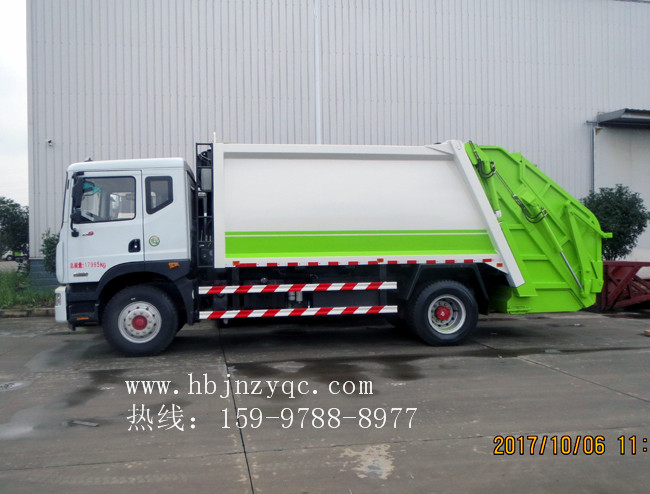 東風(fēng)D9壓縮式垃圾車(chē)(12立方)整車(chē)采用EQ1161LJ9BDE東風(fēng)原裝二類(lèi)底盤(pán)經(jīng)二次加工而成。車(chē)輛的最大總質(zhì)量為16噸,額定載質(zhì)量為5.4噸位,有效容積10-14方,可根據(jù)當(dāng)時(shí)的地理?xiàng)l件選取容量,發(fā)動(dòng)機(jī)采用東風(fēng)康明斯180馬力發(fā)動(dòng)機(jī)(排量為5.9L),整車(chē)具有國(guó)家工信部公告及國(guó)家環(huán)保總局下發(fā)的環(huán)保公告,購(gòu)買(mǎi)的車(chē)輛我公司提供上戶(hù)所需的相關(guān)手續(xù),購(gòu)買(mǎi)后可以當(dāng)?shù)剀?chē)管所直接上牌。