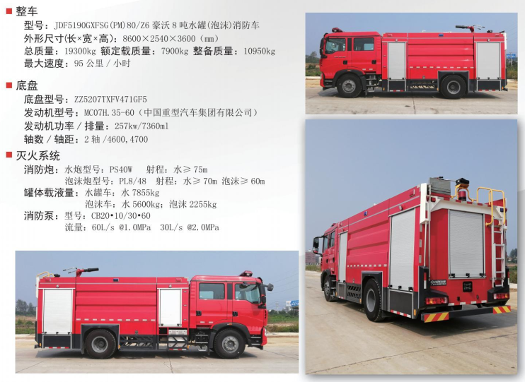 | JDF5190GXFPM80/Z6型泡沫消防車 產(chǎn)品主要技術資料 | |||