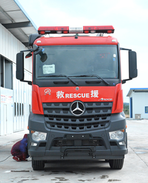 奔馳18噸水罐消防車, 整車主要由梅賽德斯-奔馳 Arocs 4158 型消防車專用底盤、 獨立乘員室、水罐、泵室、泵送系統(tǒng)、智能集成控制系統(tǒng)、水槍、水炮、隨車消防器材以及其他附屬設(shè)施等組成。整車改裝后載荷分配均勻,質(zhì)心位置和穩(wěn)定性計算精確,內(nèi)部空間布局合 理, 能充分滿足操作人員的使用要求。