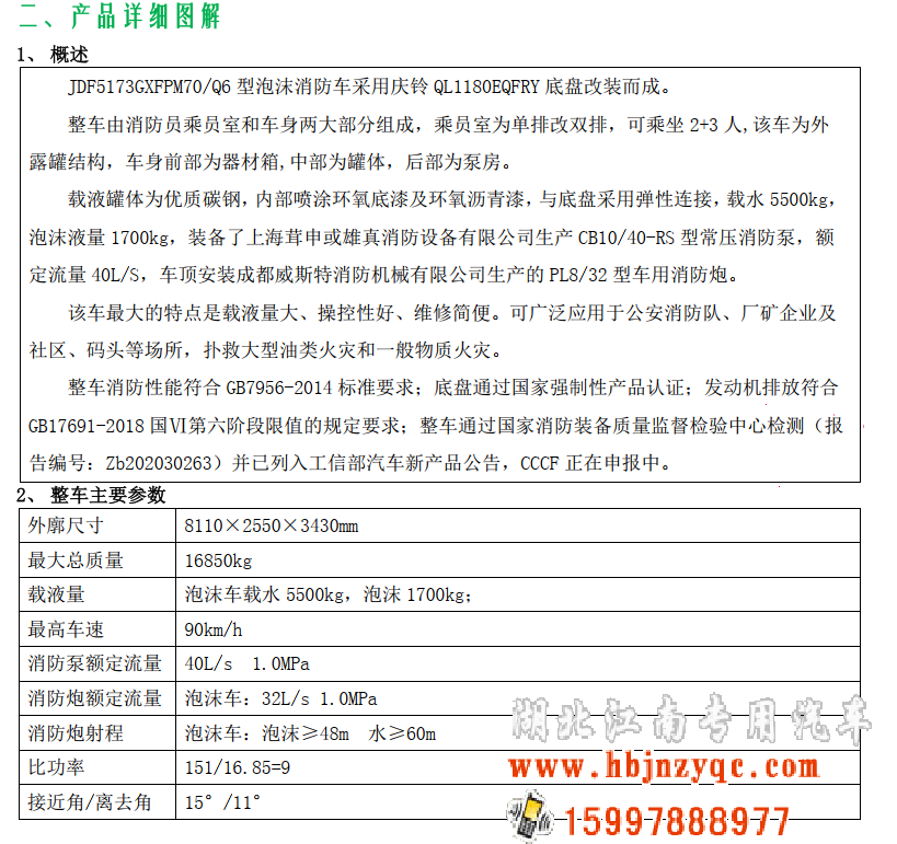 | JDF5173GXFPM70/Q6型泡沫消防車 產(chǎn)品主要技術(shù)資料 | |||